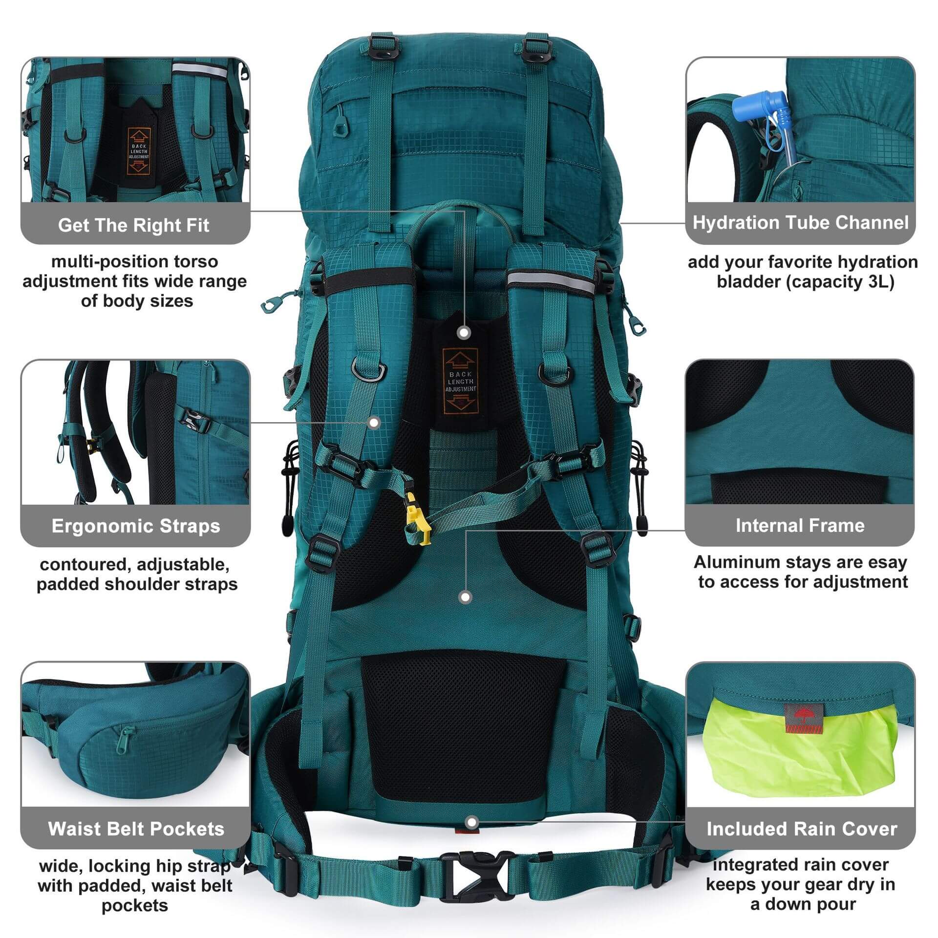 Hiking Trekking Backpack with Rain Cover ODHB002