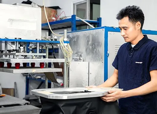 The quality control staff determines the quality as well as the cleanliness of our fabric, PVC sheet, and other components.