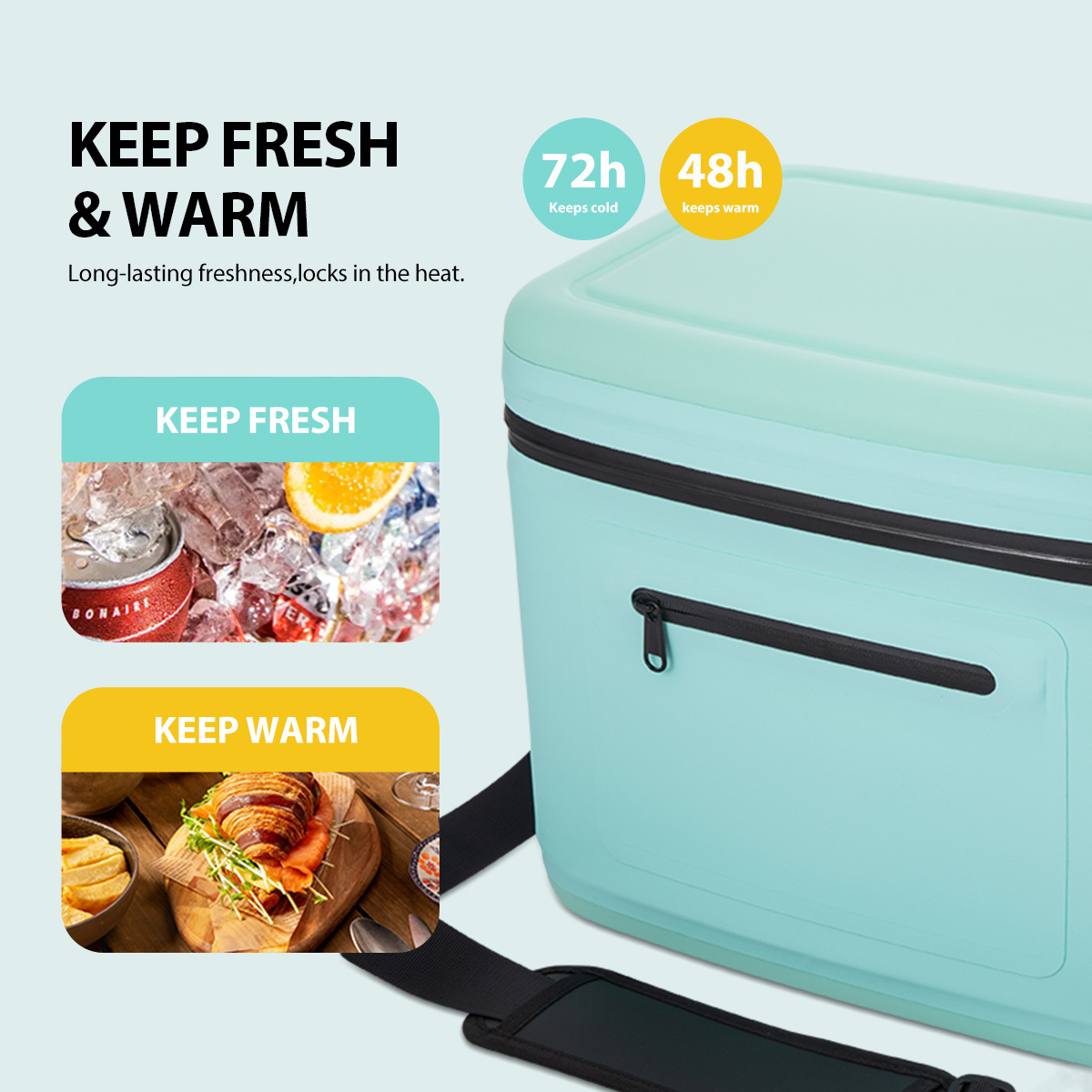 • Function: Keeps contents cold for 72 hours or warm for 48 hours with full waterproof and easy-clean performance.
