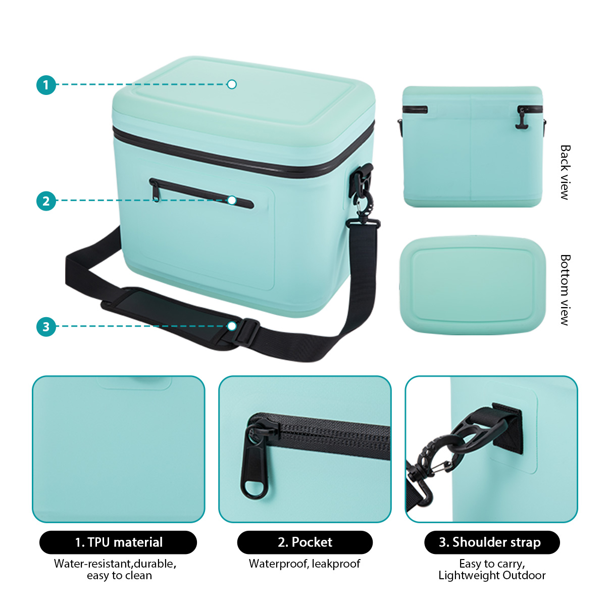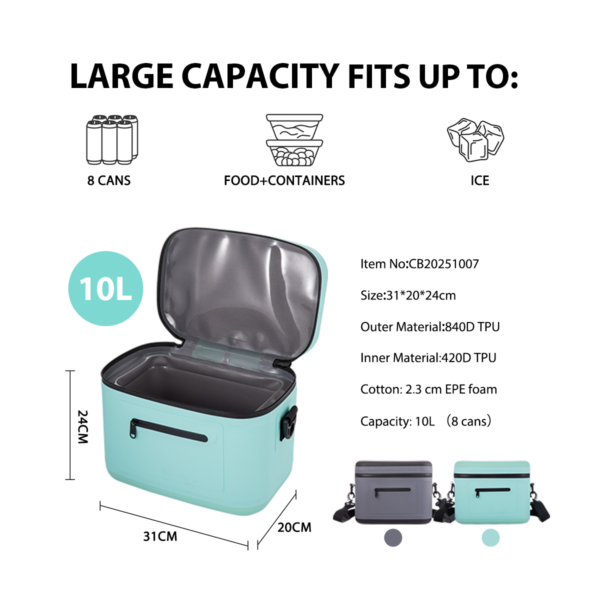 • Material: Durable TPU exterior with waterproof food-grade liner and optional Oxford or Nylon-Taffeta fabrics.